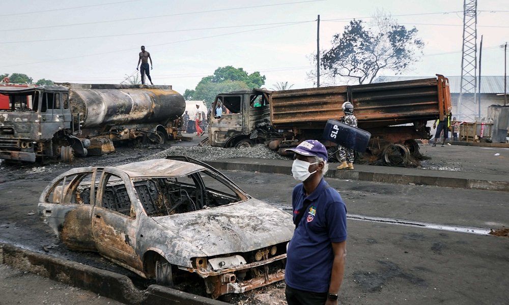 أكدت سلطات سيراليون أن “حصيلة انفجار ناقلة وقود في عاصمة البلاد مدينة فريتاون فجر السبت تلامس 100 قتيل”.