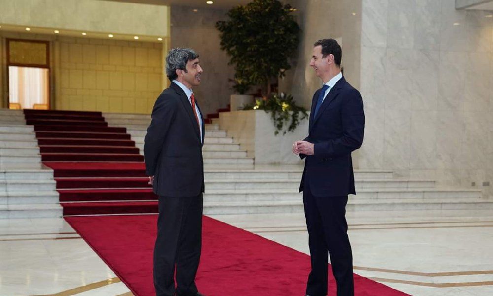 وأكد الأسد على العلاقات الأخوية الوثيقة التي تجمع بين سوريا والإمارات منذ أيام الراحل الشيخ زايد بن سلطان آل نهيان، ونوه بالمواقف الموضوعية والصائبة التي تتخذها الإمارات.