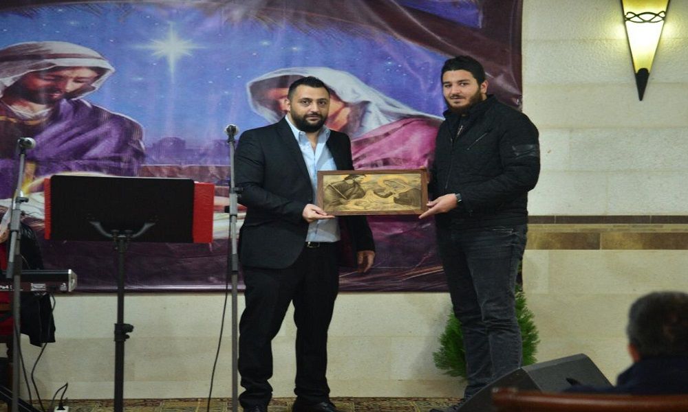 وقدم بعدها الحشاش لوحة ميلادية لكل من عائلة الراحل من ابناء البلدة جان يزبك تقديرا لعطاءاته ولعائلة الشهيد جو نون كعربون تضامن مع العائلة التي خسرت إبنها دفاعا عن الوطن. ثم تم قطع قالب حلوى بالمناسبة.