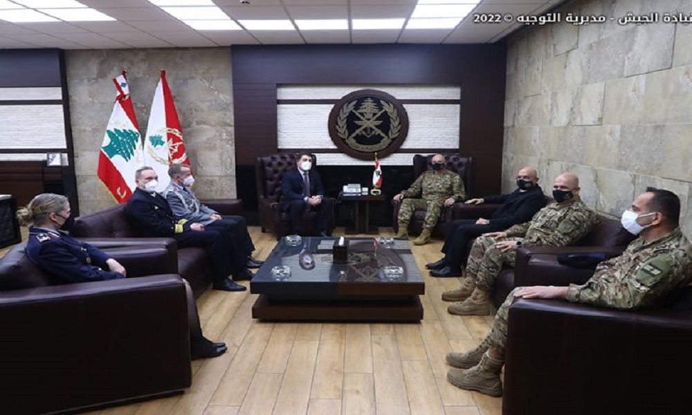 العماد عون استقبل نائب وزير الدفاع الألماني استقبل قائد الجيش العماد جوزاف عون في مكتبه في اليرزة، نائب وزير الدفاع الألماني السيد Thomas HITSHLER على رأس وفد مرافق، وجرى التداول في علاقات التعاون بين الجيشين اللبناني والألماني. اشترك فى النشرة البريدية لتحصل على اهم الاخبار بمجرد نشرها تابعنا على مواقع التواصل الاجتماعى