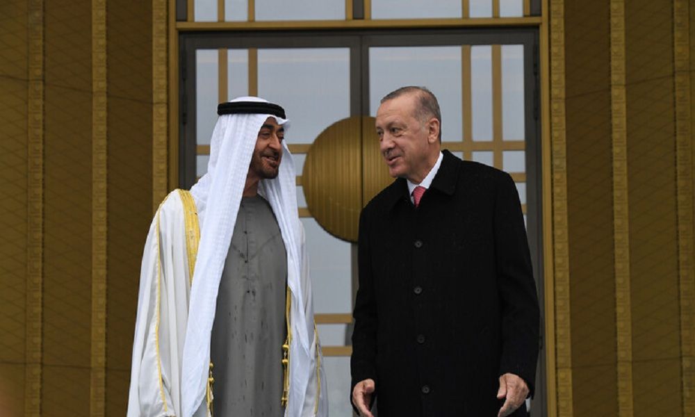 وذكرت الرئاسة التركية في تغريدة عبر “تويتر” أن “أردوغان أجرى اتصالا هاتفيا مع ولي عهد أبو ظبي الشيخ محمد بن زايد آل نهيان. وخلال الاتصال أعرب ولي عهد أبو ظبي الشيخ محمد بن زايد آل نهيان عن تمنياته بالشفاء للرئيس أردوغان وعقيلته السيدة أمينة أردوغان”.