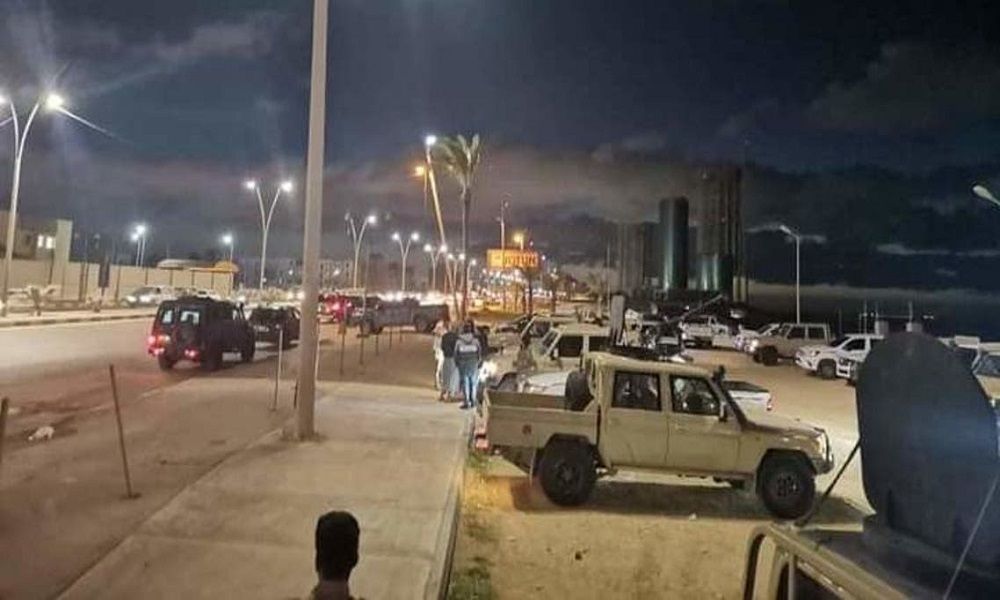 وأظهرت صور ومقاطع فيديو عناصر مسلحة تحيط بمطار معيتيقة وقوة عسكرية ضخمة تتكون من عشرات السيارات العسكرية تتجه من المنطقة الغربية إلى طرابلس، للمشاركة في تأمين وصول فتحي باشاغا إلى العاصمة، والذي من المتوقع أن يتوجه بكلمة إلى الليبيين فور وصوله إلى المطار.