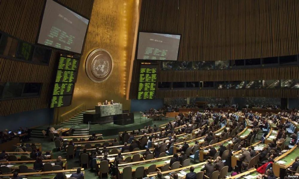 والدول الخمس التي صوتت ضد القرار هي روسيا وبيلاروسيا وكوريا الشمالية وإريتريا وسوريا.