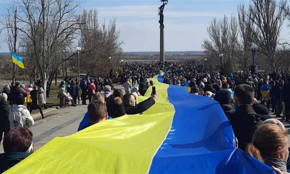 خرج آلاف الأوكرانيين إلى الشوارع في خيرسون احتجاجاً على الهجوم الروسي.