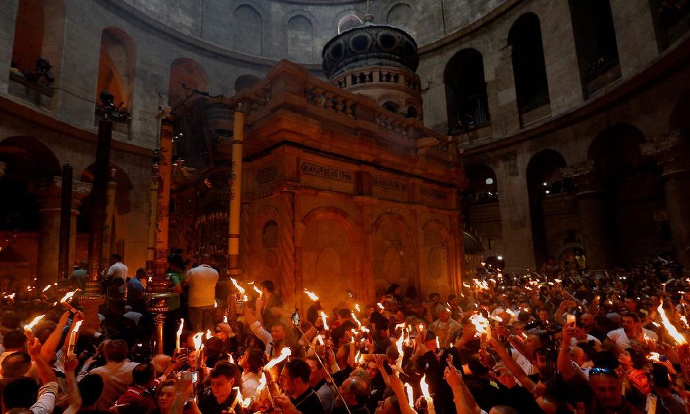 وتعالت الهتافات والتراتيل لدى دخول الشعلة التي حملها أسقف الكنيسة، فيما أنحنى مصلون ورجال دين لتقبيل الفانوس والتبرك به.