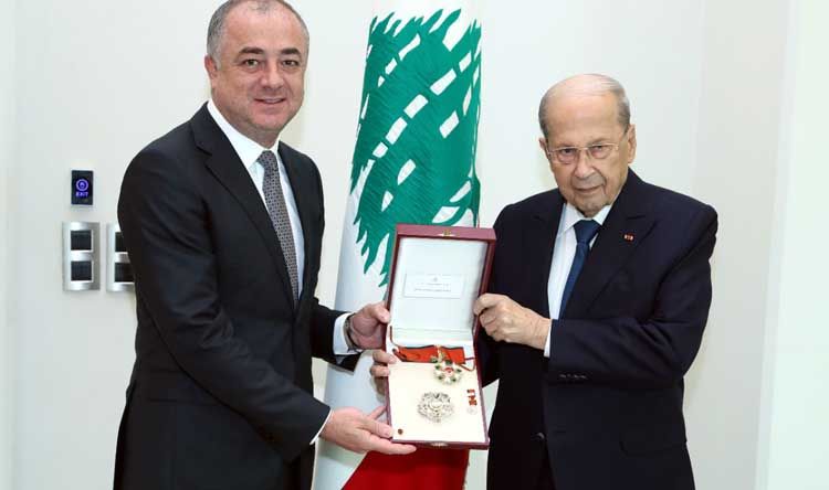 وقلّد عون، بو صعب، وسام الأرز الوطني من رتبة ضابط أكبر، تقديراً لعطاءاته الوطنية في الوزارة والنيابة وللدور الفعّال الذي قام به في مسار المفاوضات الاخيرة لترسيم الحدود البحرية الجنوبية.