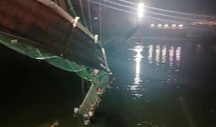 انهار جسر معلق في الهند كان مكتظاً بالمارة، ما أدى لسقوط مئات الأشخاص في نهر بولاية كجرات.