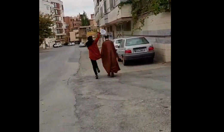 انتشر فيديو عبر مواقع التواصل الاجتماعي، لفتاة إيرانية تتجه نحو رجل دين وتخلع عنه عماماته وسط الطريق.