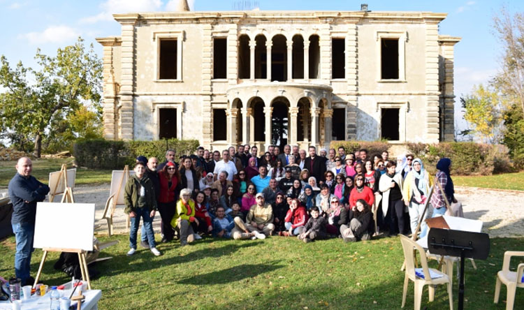 وقام المشاركون بزيارة الاماكن المميزة بصوفر، وبعدها بدأ التشكيليون برسم لوحاتهم في حديقة قصر دونا ماريا.