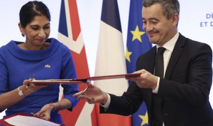 وبموجب الاتفاق الموقَّع في باريس بين وزير الداخلية الفرنسي جيرالد دارمانان، ونظيرته البريطانية سويلا برافرمان، ستدفع بريطانيا لفرنسا 72.2 مليون يورو (74.5 مليون دولار) في عامي2022 – 2023 لتزيد السلطات الفرنسية بنسبة 40% عدد عناصر قواتها الأمنية الذين يسيِّرون دوريات على شواطئ فرنسا الشمالية، وفقاً لما ذكرته وزارة الداخلية الفرنسية.
