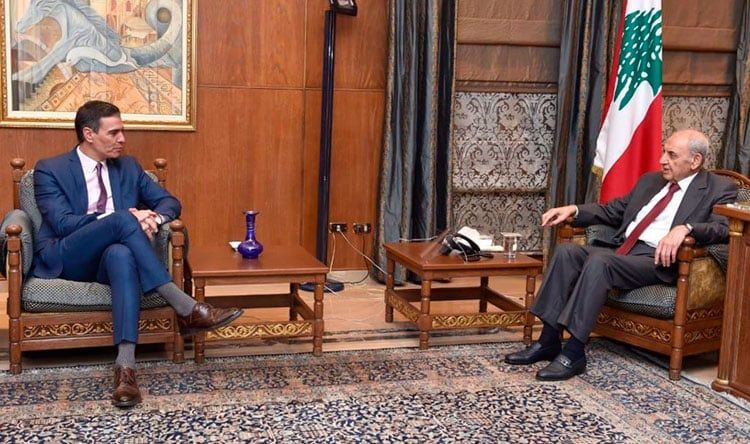 التقى رئيس مجلس النواب نبيه بري، مساء اليوم الأربعاء في عين التينة، رئيس الحكومة الإسبانية رئيس الحكومة الإسبانية بيدرو سانشيز، ووزيرة الدفاع الإسبانية مارغريتا روبلز بحضور السفير الإسباني في لبنان خيسوس سانتوس إغوادو والوفد المراف، وجرى عرض للأوضاع العامة في لبنان والمنطقة والعلاقات الثنائية بين لبنان وإسبانيا.