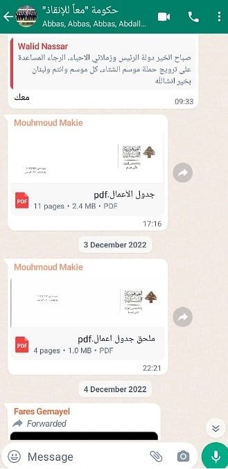 – بعدها، تلقّى حجّار اتصالاً آخر من القاضي محمود مكيّة بتاريخ 2 كانون الأول ظهراً يطلب منه التوقيع على المرسوم، لكن بصيغةٍ أخرى (مرفقاً صورة عن المحادثة)، فوقّع عليه حجّار عند الساعة الرابعة والنصف من بعد ظهر اليوم ذاته، ولم يكن بعد أُعلن عن جلسة مجلس الوزراء. في ليل 2 كانون الأول، تمّ الإعلان عن الجلسة، ولم يكن هذا البند مدرجاً على النسخة الأوليّة لجدول الاعمال (تجدون مرفقاً النسخة الأوليّة لجدول الأعمال الذي أرسل ليل 2 كانون الأول وعدد بنوده 65 وملحق لجدول الأعمال الذي أرسل في 3 كانون الأول حيث أصبح عدد البنود 25)”.
