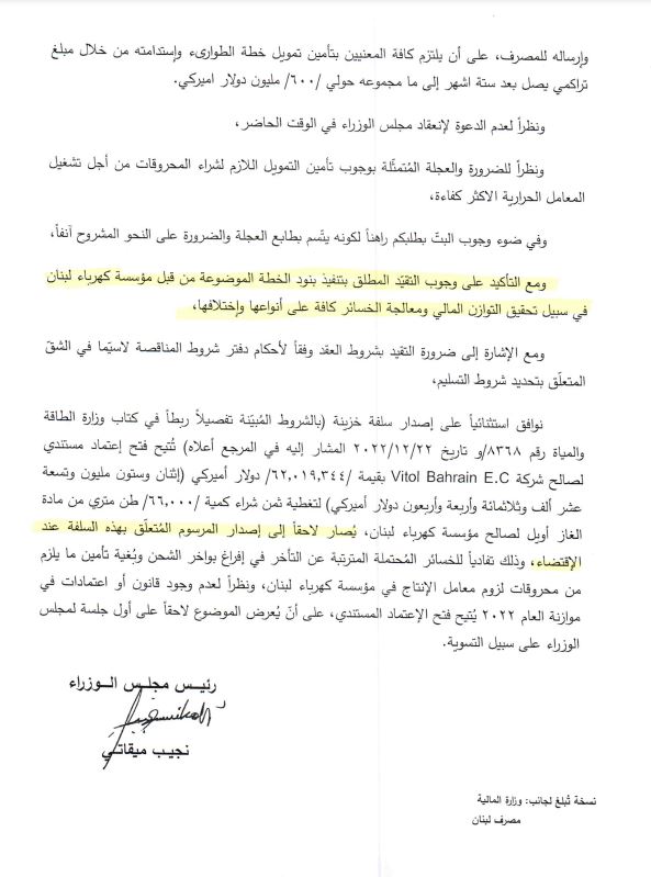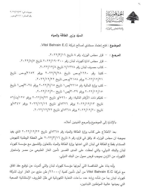 وأردف، “أما في ما بتعلق بالإشكالية المالية والقانونية المتعلقة ببواخر الفيول، فنحيل الرأي العام على ما ورد اليوم على لسان رئيس هيئة الشراء العام جان العلية”.