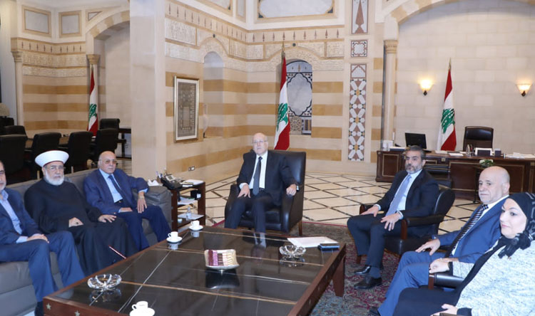 واستقبل رئيس الحكومة النائب محمد سليمان الذي أعلن بعد اللقاء، “ناقشنا مع دولة الرئيس عدة أمور على المستوى الإنمائي في منطقة عكار والحالات الإنسانية التي تعاني منها عدة قطاعات ومن بينها الدفاع المدني ومشكلة الكهرباء في سهل عكار الذي يعاني من غياب الطاقة بسبب سرقة الأسلاك الكهربائية للأسف، وقد فهمت من دولة الرئيس أنه تم وضع نحو 12 بلدة ضمن الأولويات وسيتم تركيب الأسلاك الكهربائية فيها قريباً”.