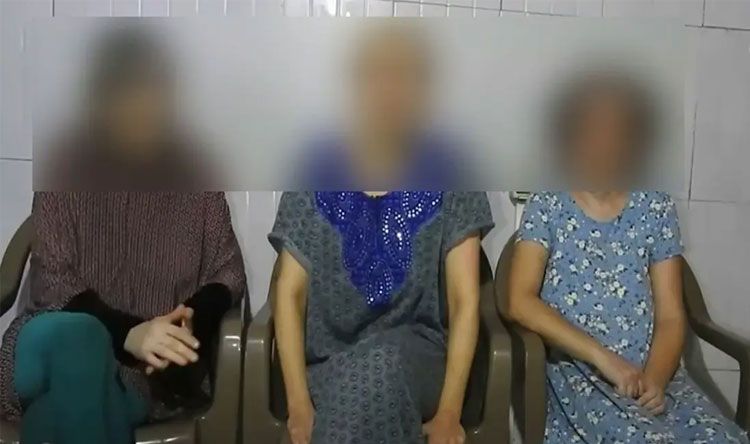 ويُظهر المقطع، ومدته 76 ثانية، السيدات الثلاث يجلسن على كراس بلاستيكية، وخلفهن بلاط أبيض اللون.