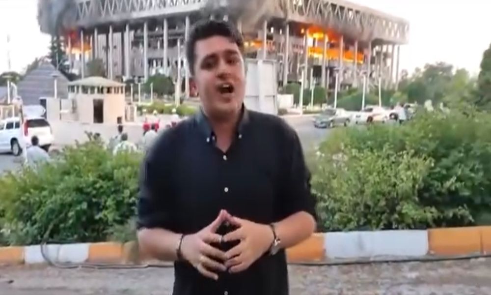 وظهر المراسل في الفيديو وهو يُكمل التغطية الميدانية بينما تنزف يداه، في مشهد أثار تفاعلًا واسعًا على منصات التواصل.