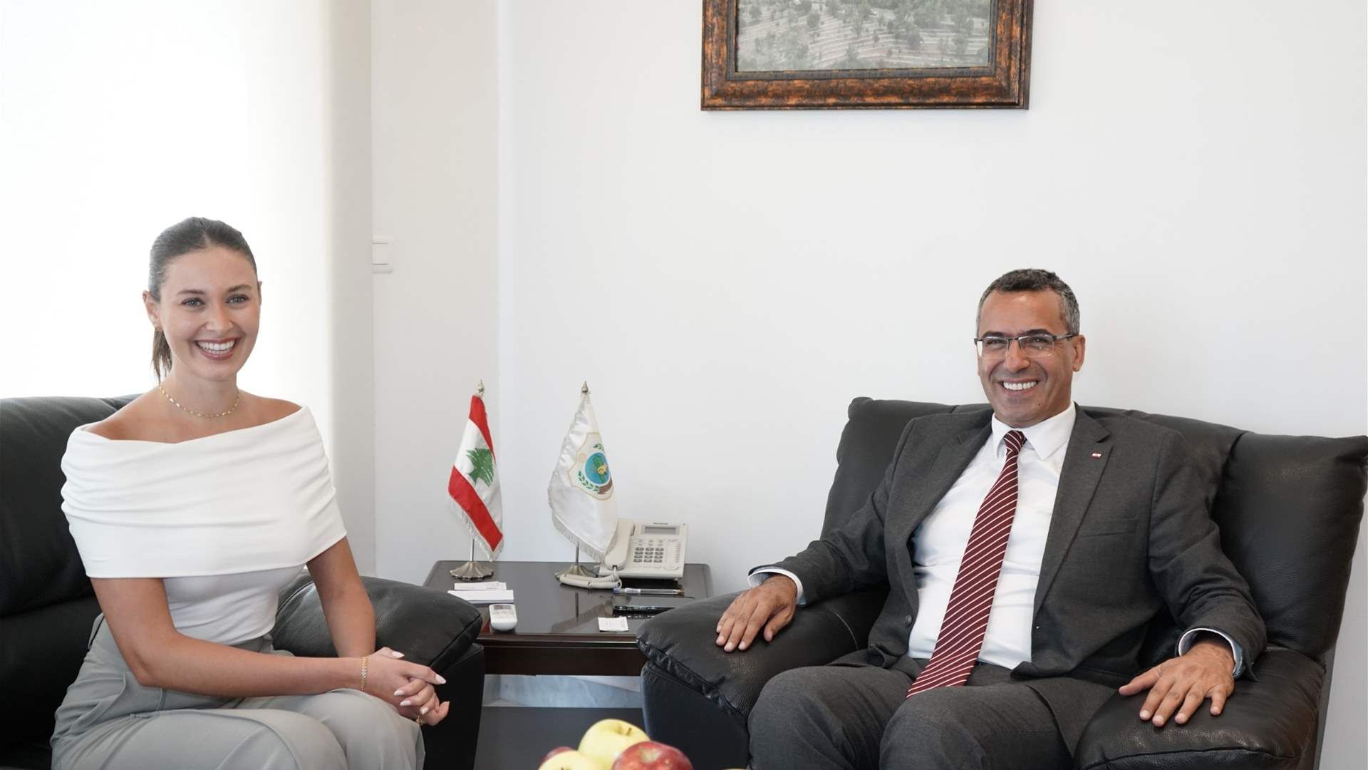 ورحّب هاني بالضيفة، معتبرًا حضورها قيمة مضافة إلى العمل الوطني والإنمائي، وقال: “يسرّني أن أرحب بك في وزارة الزراعة، فنحن نرى فيك وجهًا مؤثرًا وملهمًا قادرًا على أن يكون سفيرًا لرسائل الزراعة المستدامة وحماية البيئة. إن انخراطك الفعّال في حملات الوزارة، وتشجيع استهلاك المنتجات الزراعية اللبنانية، ونشر الوعي بأهمية الأمن الغذائي، هو رسالة وطنية وإنسانية بامتياز. كما نتطلع إلى أن تساهمي في نقل هذه الرسائل إلى المدارس والجامعات والشباب، وتسليط الضوء على دور المرأة في التنمية الريفية، لتكوني مصدر إلهام للأجيال المقبلة”.