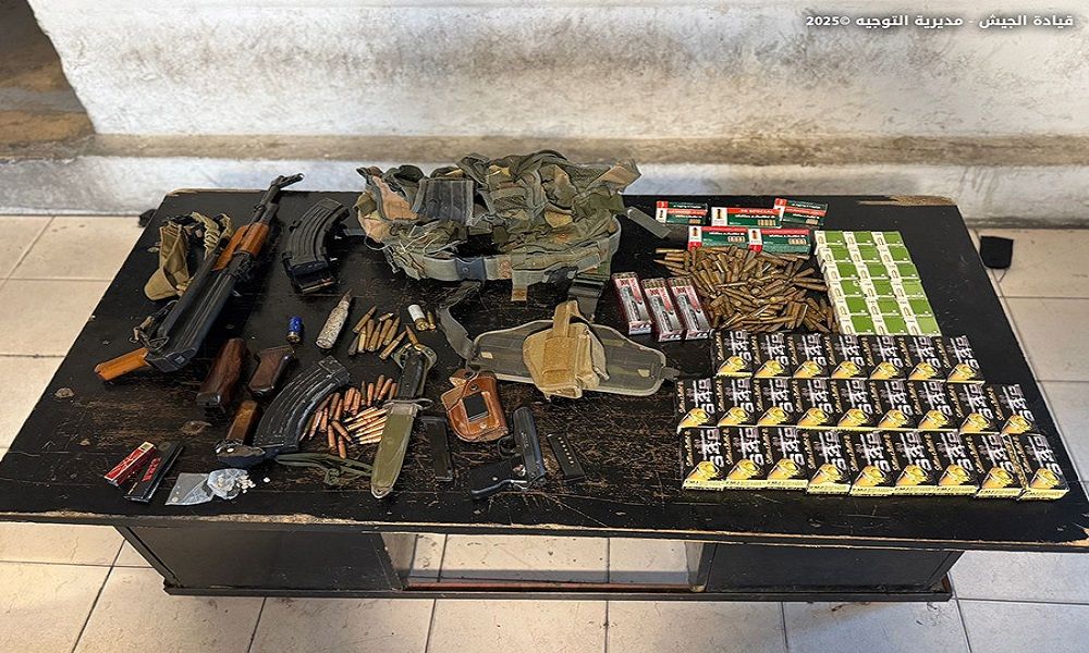 أعلنت قيادة الجيش – مديرية التوجيه، أن “وحداتها تواصل ملاحقة المطلوبين والمخلين بالأمن في مختلف المناطق اللبنانية، وفي هذا السياق دهمت وحدة تؤازرها دورية من مديرية المخابرات منازل متورطين في إشكال مسلح بتاريخ سابق، تخلله تبادل لإطلاق النار في بلدة بزال – عكار نتيجة خلافات شخصية، وأوقفت المواطنَين (ع.ع.) و(ع.م.)، وضبطت في حوزتهما سلاحًا حربيًّا وكمية من الذخائر”.