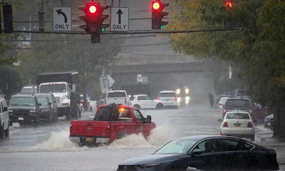 توفي شخصان جراء هطول أمطار غزيرة على مدينة نيويورك الأميركية يوم أمس الخميس، حسب رئيس بلدية المدينة إريك آدامز، فيما تسببت العواصف المصاحبة في تعطيل الرحلات الجوية وحذرت سلطات الطقس من سيول في بعض المناطق.