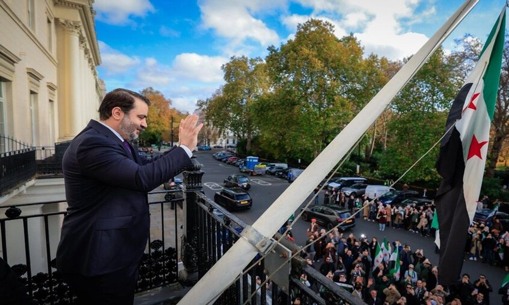 رفع وزير الخارجية السوري أسعد الشيباني اليوم الخميس، العلم السوري فوق السفارة السورية في العاصمة البريطانية لندن.