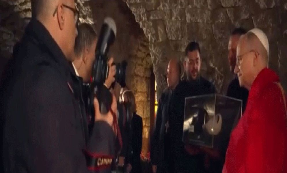 كما أهداه الدير سراجاً يدوياً للقديس شربل يحتوي على ذخائره، إضافة إلى شمعٍ عسلي من صناعة الرهبان ويحمل الشعار البابوي.