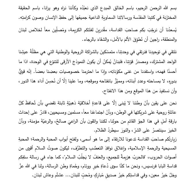 وتابع، “لبنان قوي بدوره لا مساحته وعدد أبنائه ونحن واثقون بأن الراعي صالح وأن الخير سينتصر على الشر وليكن صوت السلام أقوى من أصوات الحروب”.