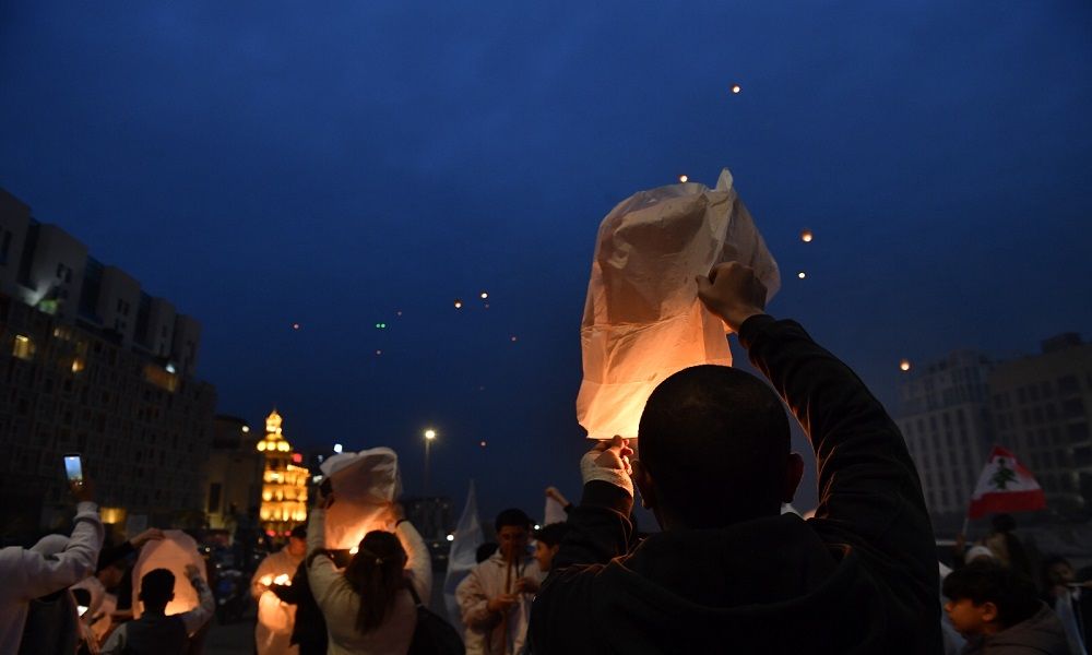وشهدت الساحة إطلاق 500 منطاد مضيء في سماء العاصمة، في مشهد رمزي عبّر المشاركون خلاله عن الوفاء لذكرى الحريري.