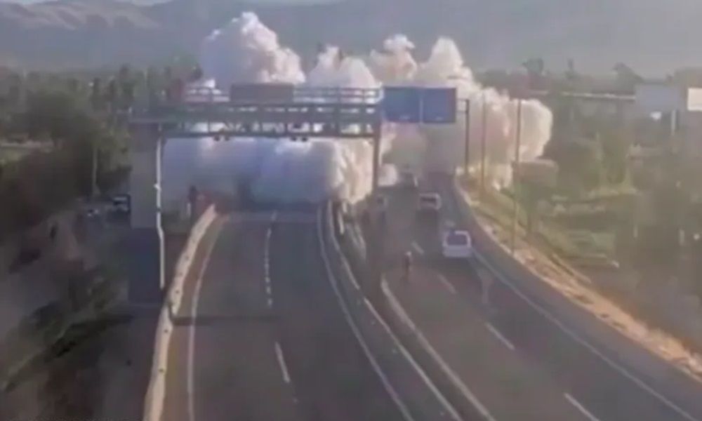 وأظهرت مقاطع متداولة على مواقع التواصل الاجتماعي، ألسنة لهب تتصاعد من موقع الانفجار، فيما انتشرت سحابة غاز رمادية على الطريق خلال ثوانٍ معدودة.