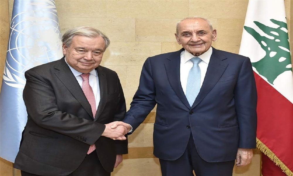 بري جدد أمام غوتيرش التأكيد على تمسك لبنان بالقرار الأممي 1701، والذي لا بديل عن قوات اليونيفيل لتطبيقه بمؤازرة الجيش اللبناني، داعياً إلى وجوب إلزام إسرائيل بوقف عدوانها وتطبيق إتفاق تشرين الثاني 2024.