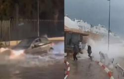 وتظهر اللقطات اللحظات الأولى للانفجارات التي رافقت القصف.