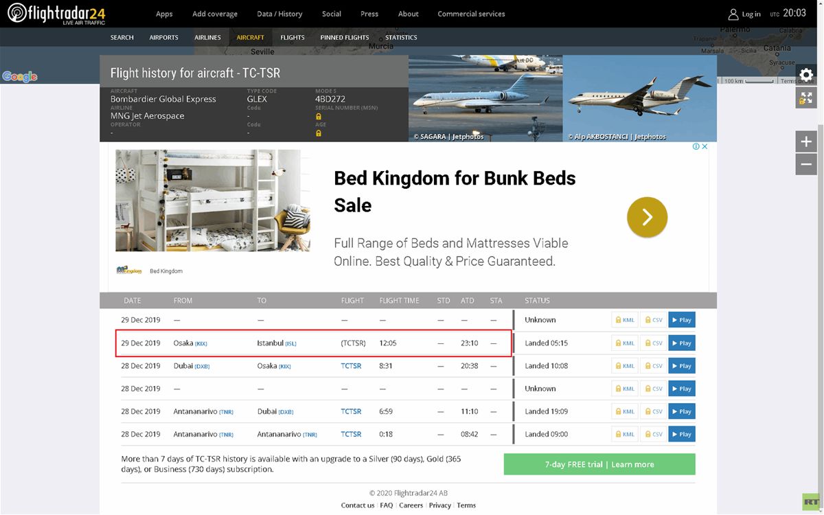 بدورها، نقلت وكالة "رويترز" قول الشركة إنّه "استأجر عميلان مختلفان طائرتين من "إم إن جي"، مضيفة أن إحدى الرحلتين اتجهت من دبي إلى أوساكا ومن أوساكا إلى اسطنبول والأخرى من اسطنبول إلى بيروت وأكدت أنه لم تكن هناك صلة واضحة بين الرحلتين المستأجرتين.