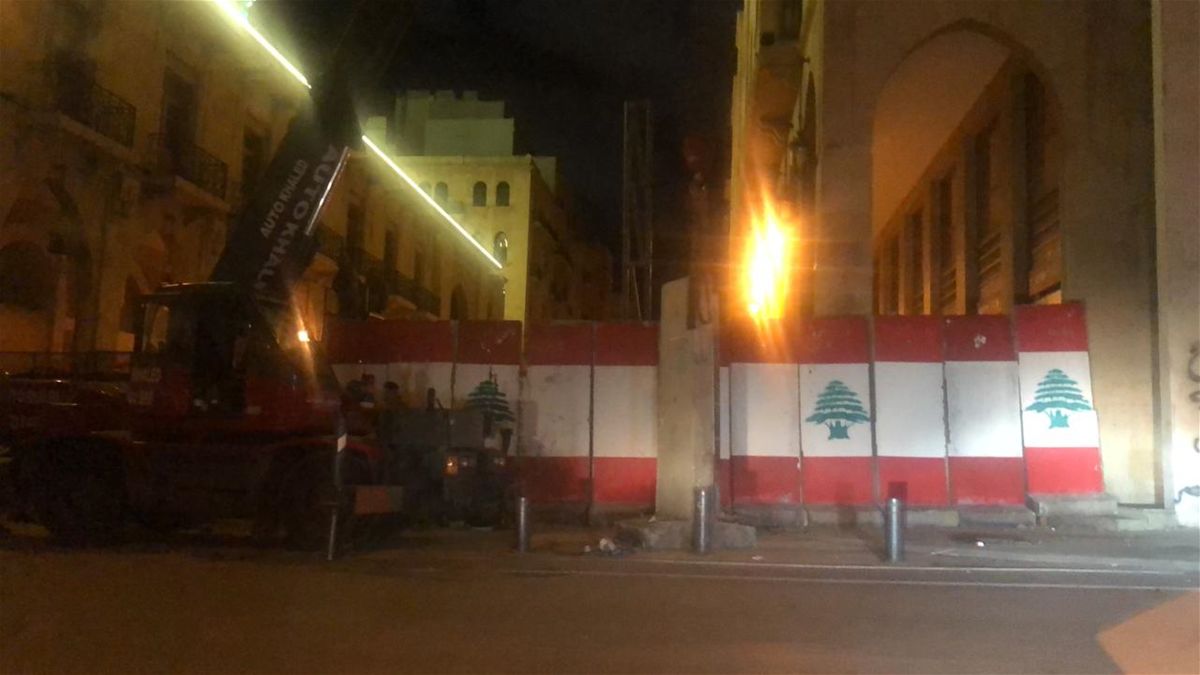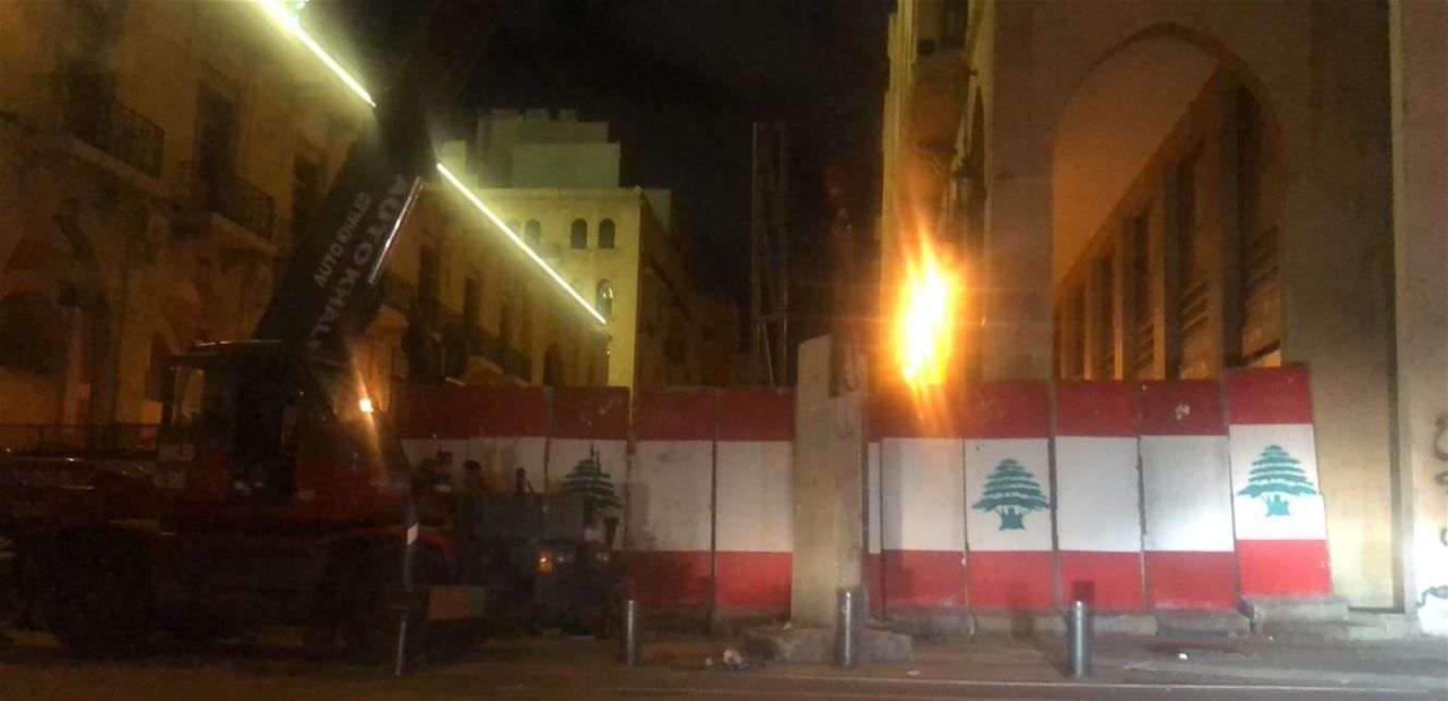 عززت القوى الأمنية التحصينات على المداخل المؤدية إلى مجلس النواب لجهة جامع العمري - أسواق بيروت، بإضافة جدران فاصلة بعد جولة من المواجهات بين المحتجين والقوى الأمنية ليل البارحة حاول خلالها الشبان تجواز العوائق الحديدية للدخول باتجاه المجلس النيابي.