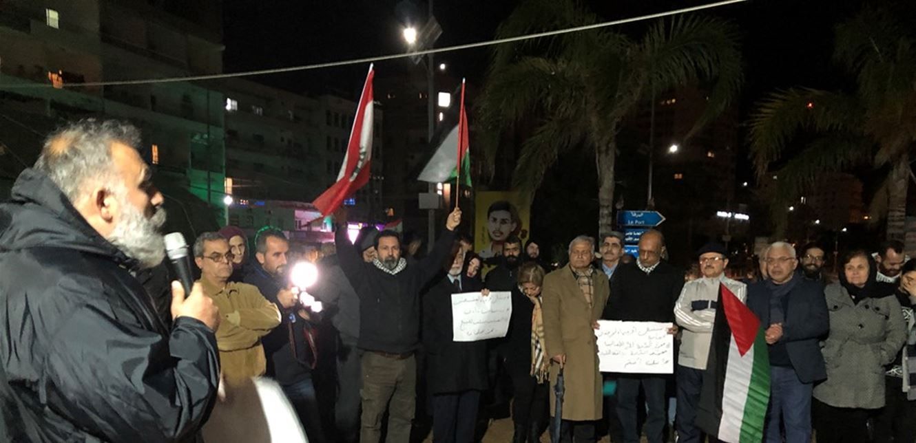 نظم محتجو ساحة العلم في صور وقفة تضامنية مع الشعب الفلسطيني، تحت شعار "تسقط صفقة العار... تسقط صفقة القرن"، بمشاركة من المخيمات الفلسطينية. ورفعت خلال الوقفة الأعلام الفلسطينية واللبنانية ولافتات نددت ب"صفقة القرن والرئيس الأميركي دونالد ترامب". وردد المحتجون هتافات معادية لأميركا وإسرائيل و"بعض الدول العربية المتخاذلة".