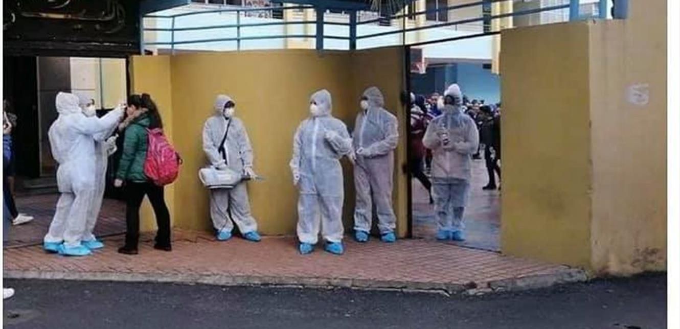 تداول ناشطون عبر مواقع التواصل الإجتماعي، صورة ومقاطع فيديو من أمام مدرسة البيان في الضاحية الجنوبيّة لبيروت، حيث تقوم مجموعة من الأشخاص ترتدي ملابس واقية بيضاء، برشّ الطلاب بمواد معقّمة قبل دخولهم إلى الصفوف فضلاً عن قياس درجة الحرارة لديهم، وذلك في إطار الإجراءات المتخذة ضدّ فيروس "كورونا".