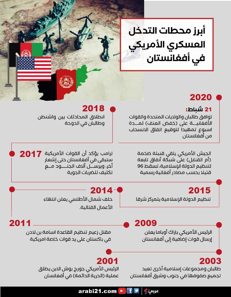 تعرّفوا في الإنفوغراف التالي أبرز محطات التدخل العسكري الأميركي في أفغانستان.