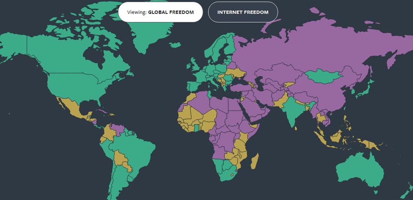 نشرت منظمة "فريدوم هاوس" (freedom house) قائمة بترتيبها السنوي لأكثر دول العالم حرية وأكثرها قمعا، للعام الرابع عشر على التوالي، تبين أن الحرية العالمية قد انخفضت، إذ شهدت 64 دولة انخفاضا في الحرية، في حين تقدمت 37 دولة فقط في الاتجاه الصحيح نحو بلد أكثر حرية. تعبر مؤشرات الديمقراطية عن النسب المئوية لمدى ضمان الدول لحقوق مواطنيها السياسية والمدنية، حيث تدل زيادة النسبة على زيادة معدل الحرية في البلاد وبالعكس.