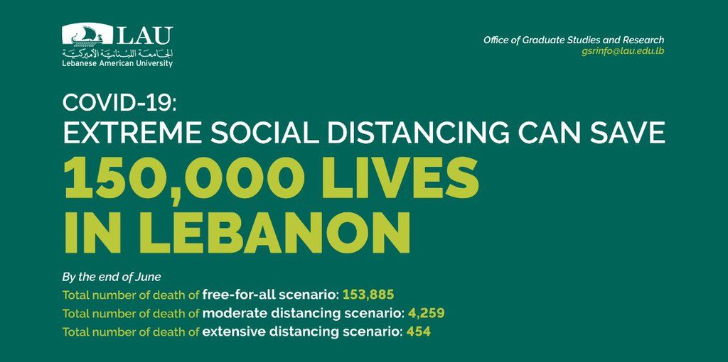 أجرت الجامعة اللبنانية الأميركية (LAU) دراسة بشأن فيروس "كورونا" في لبنان، كاشفة عن أرقام الوفيات في حال لم يتمّ الإلتزام بالحجر المنزلي الصحي.