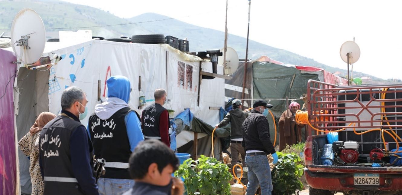 صدر عن المديرية العامة للأمن العام البيان الآتي: "في إطار تطبيق مقررات مجلس الوزراء للحد من انتشار فيروس كورونا، واصلت المديرية العامة للأمن العام عملية تعقيم مخيمات النازحين السوريين للوقاية من انتشار وباء كورونا. وفي هذا الإطار، قامت دوريات من المديرية - دائرة الأمن القومي- بالتنسيق مع عدد من البلديات وهيئات المجتمع المدني بالاشراف على أعمال تعقيم 52 مخيما توزعوا على الشكل الآتي: البقاع 37 مخيما، الشمال 10 مخيمات، الجنوب 4 مخيمات، وجبل لبنان مخيم واحد. وتم إبلاغ مسؤولي المخيمات من قبل الدوريات وجوب متابعة أعمال التعقيم بصورة دورية ودائمة والإفادة الفورية عن أي شخص تظهر عليه عوارض الوباء".